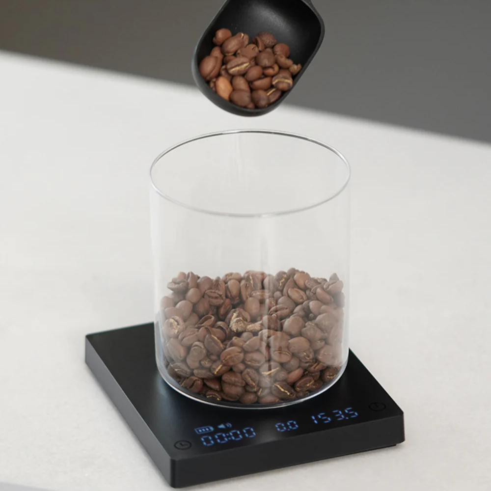La mini balance à café noir miroir Timemore est une balance à café riche en fonctionnalités et abordable, avec un encombrement réduit. La Mini est idéale pour les voyages et s'adapte parfaitement aux bacs d'égouttage espresso .