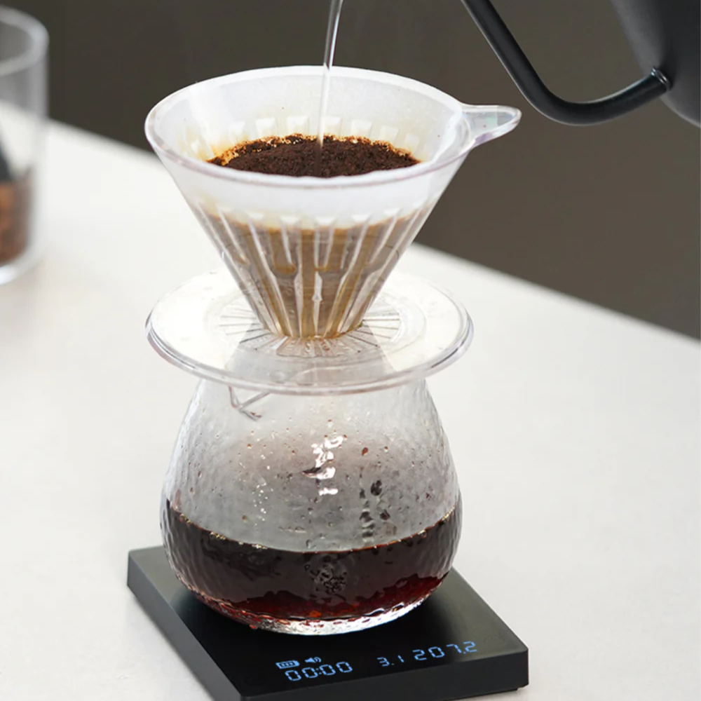 La Mini possède toutes les fonctionnalités que vous recherchez : précision et réactivité accrues, interrupteur d'alimentation physique, boutons texturés, minuterie automatique avec détection du poids, possibilité de passer des grammes aux onces et surveillance du débit, pour vous offrir plus d'informations et un meilleur contrôle sur votre infusion.